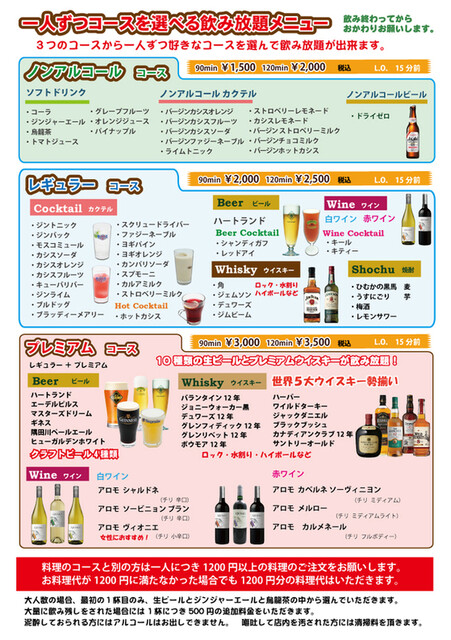 | サービス | 2時間半以上の宴会可、お祝い・サプライズ可、テイクアウト |