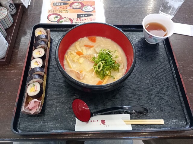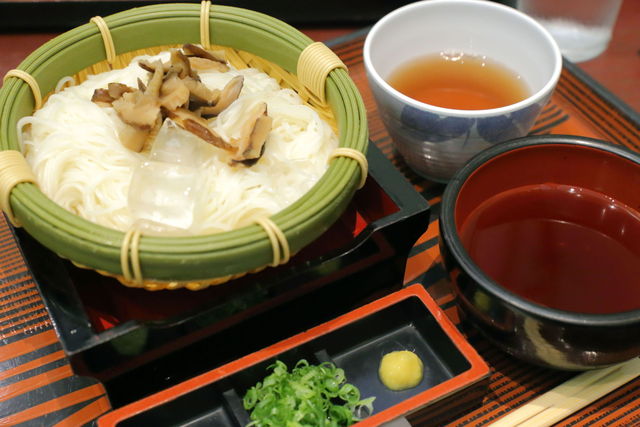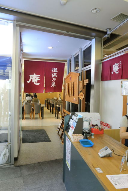 以前から気になっていた東觜崎のレストラン「庵」に初来店。揖保乃糸が経営するそうめんの里に併設されているレストランです。山の帰りに立ち寄りました。土曜日の11:30頃来店したら賑わっていました。お席で店員さんに注文するシステムです。