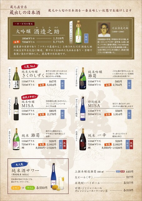 | ドリンク | 日本酒あり、焼酎あり、日本酒にこだわる |