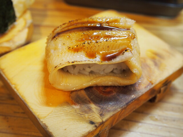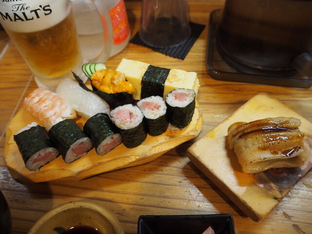 肩肘張らない雰囲気と庶民的な価格で、鮮度の良い美味しい寿司が食べられる【立ち喰い寿司 魚路】。店内には、一枚板を使った立ち喰い専用のカウンターと、予約専用のお座敷席があります。店主は市場で働いていた経験から、魚の知識が豊富。市場では独自の仕入れルートを持ち、魚に対する鮮度の見極めには自信あり。中でも人気なのは穴子を丸ごと贅沢に使った握り『穴子一本』。穴子本来のふわっとした柔らかさと旨みが味わ...