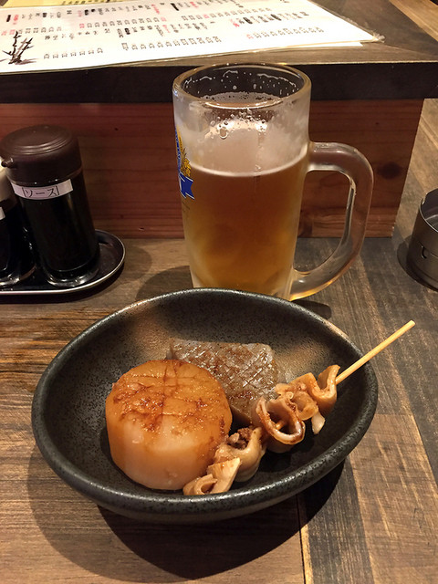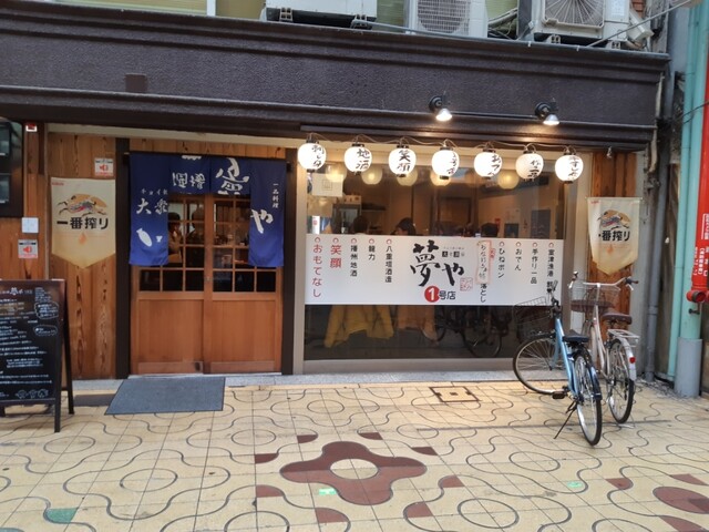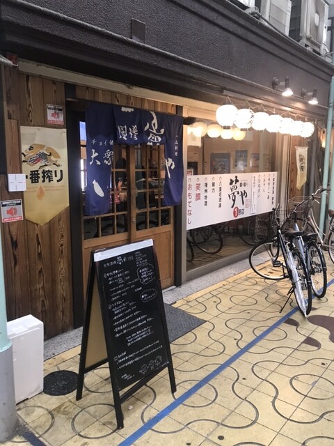 姫路で用事を済ませ、お昼時に、がっつりランチを食べるほどでもないけど、大阪に帰る前に姫路グルメをつまみながら、ちょっと一杯やりたいなあと思っていてお店を物色していたら、おそらくは系列店が数店舗ありそうなこのお店に入りました。