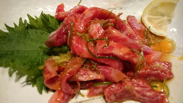 余計な脂はトリミングされていて旨味が強くて、一口噛むと柔らかく歯切れも良く、尚且つジュワーっと旨味も...