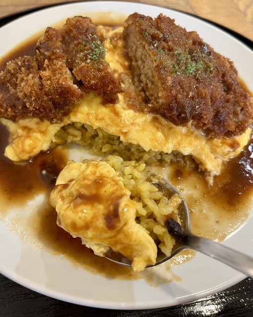 早速メニュー拝見!というか来る前からポークかつのせオムドライカレーと決めてたので、後は大きさを決めるだ...