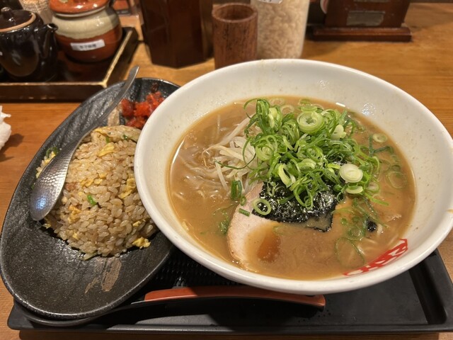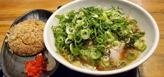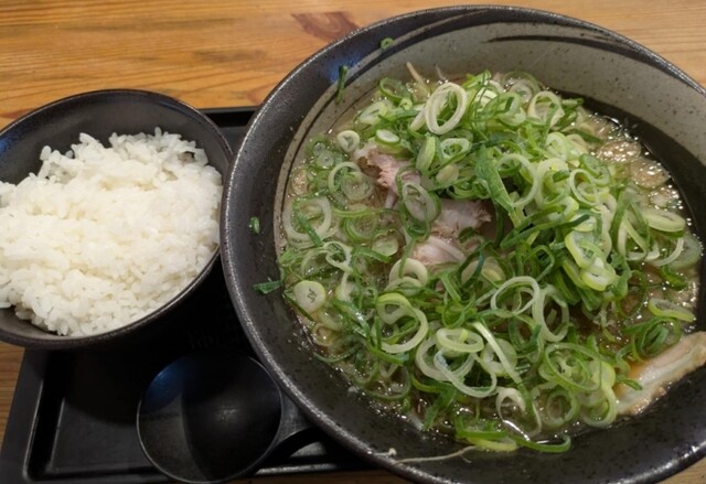 らーめんライスランチ(880円)のラーメンを「とろみこってり」にチェンジ(+130円)、さらにネギ大盛り(無料)でお願いしまし...
