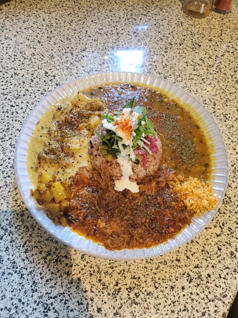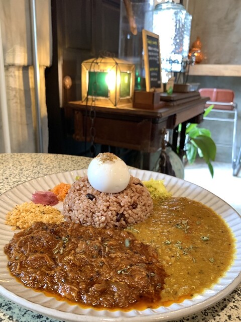 2022年3月にヒガシマル醤油本社前にオープンしたスパイスカレーとコーヒーのお店 若いご夫妻のコダワリが詰まった料理とお店 ダルカレーと無水チキンのあいがけに、半熟ゆで卵をトッ... 詳細を見る