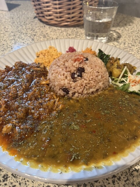 ダルと無水チキンの2種のカレーを