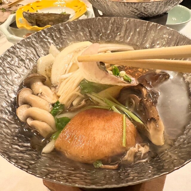 その日のお刺身や淡路牛鉄板焼きに加え、アワビや当店名物水煙蒸しが付きます。