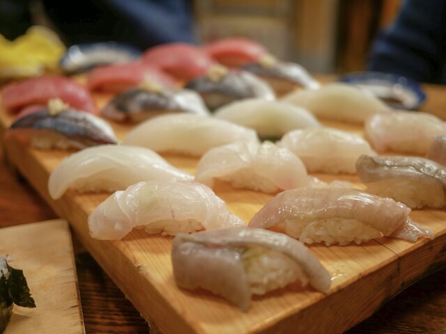 淡路島の表記の寿司店に地元友人と訪問。岩屋港近く(徒歩5分)の路地にある100年以上続く林屋鮮魚が営む有名店。明石港からジェノバラインを利用し13分600円で行けるのが嬉しい。