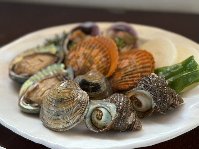 【ランチ限定】活けあわびやさざえ等、活け貝の磯焼きコース(2名様より)5品