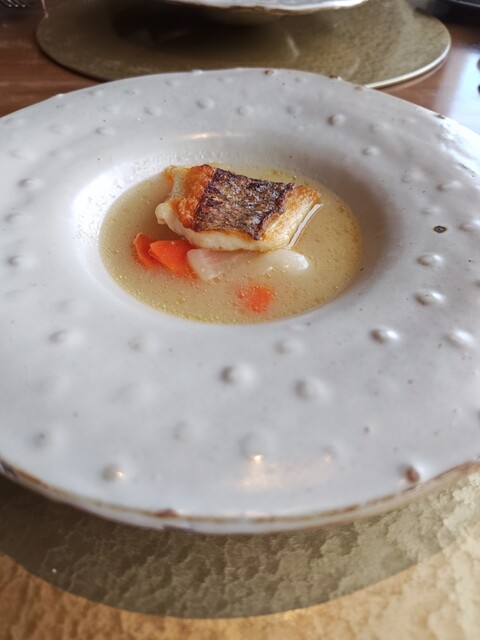 岩屋の鮮魚ポワレ餅と島の白味噌入りミネストローネ「お雑煮」