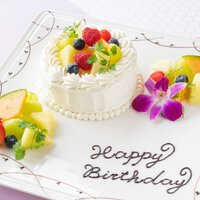 お誕生日をミエレザガーデンでお祝いすることができます。 名前と誕生日メッセージが書かれた特製ケーキのプレートで、特別な記念日をお祝い♪