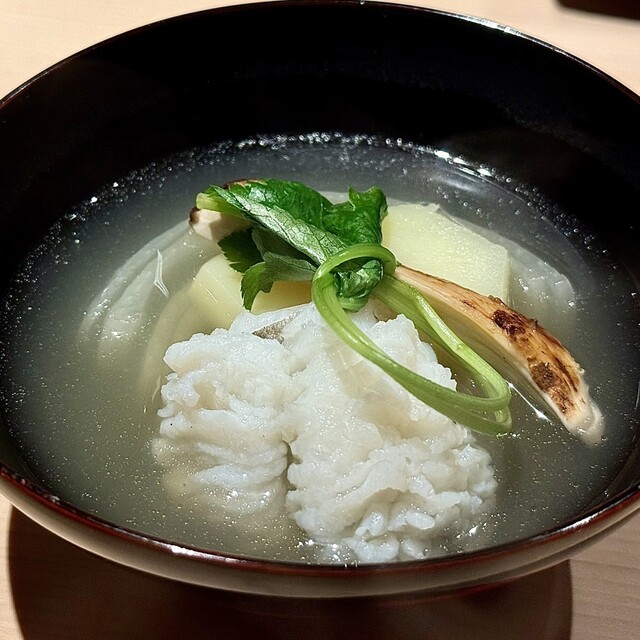 【すし 藤森/淡路島 釜口】¥23,920 @sushifujimori 平日の夜に自宅兼店舗のすし藤森さんにお邪魔した。 淡路海、ひいては大阪湾を望む高台の新築で、店構えは炭焼木目調の黒を基調として美しい。 店内に入ると靴を脱ぎ、スリッパに履き替える。 内装は劇場型で白木の大きな... 詳細を見る