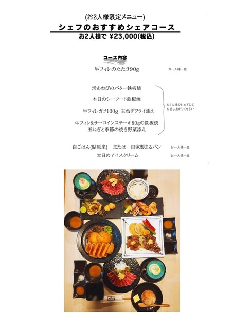 シェア、お取り分けを御遠慮いただいております。 |