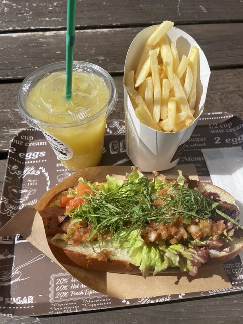 香川帰りにちょっと寄り道して福良へ。お昼も超えた時間だしと思って食べたホットドッグが大当たり!何度も福良には寄ってますが、いままで淡路で食べるならお魚系と思って選択肢に入ってなかったのがもったいなかったかも。テイクアウトのお店ですが、表にベンチとテーブルがあって、食べるのも困りませんでした。出来たてホットドッグを頬張るの幸せですね。パンもしっかりしてて美味しいです。揚げたてフライドポテトもたっぷり...