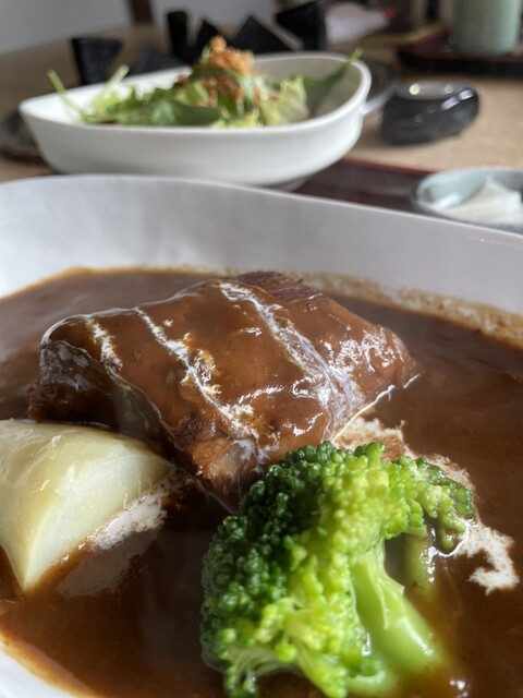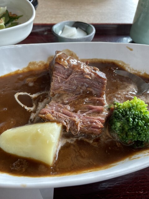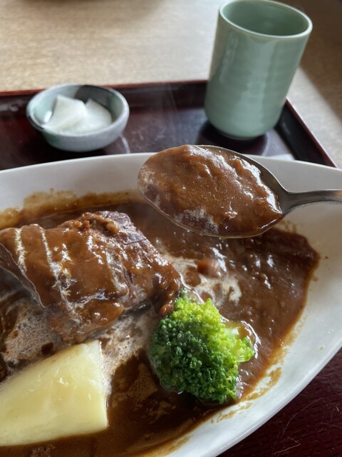 天気もいいしドライブも兼ねて久しぶりに行ってみようと伺いました。 土曜日の11:30頃に到着。 入店して待合室に入ると先客は一組。しかしテーブルには御予約の札が立っており時間がかかるかなと思いながらメニューを見ながら待っていると10分ほどで着席できました。 ステーキ丼、相方さんはビーフシチ... 詳細を見る