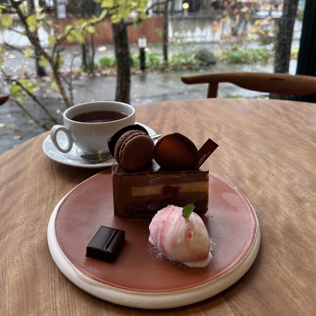 マダガスカルって名前のケーキ!チョコレートケーキなんだけど、マカロンなどのってて、このビジュアルの良さ!とっても美味しい♡冬は、あっさりさっぱりしたケーキも美味しいですが、チョコレートケーキが良い♡美...