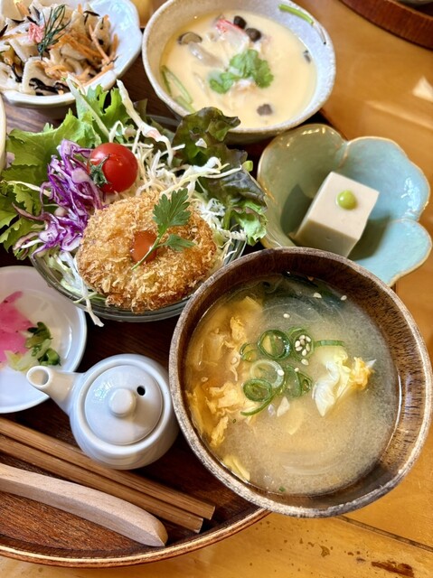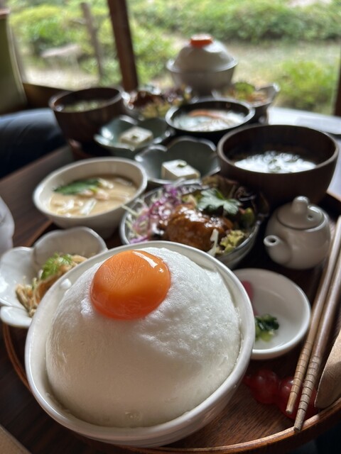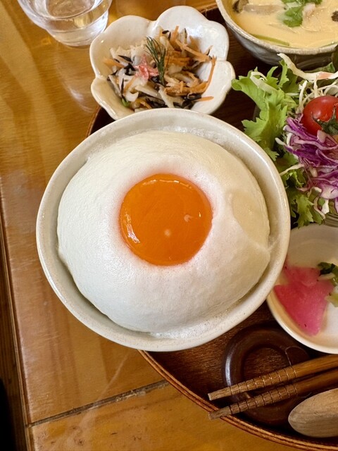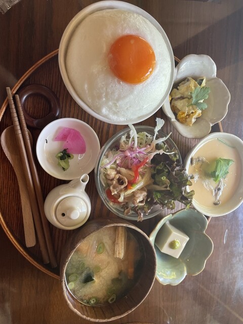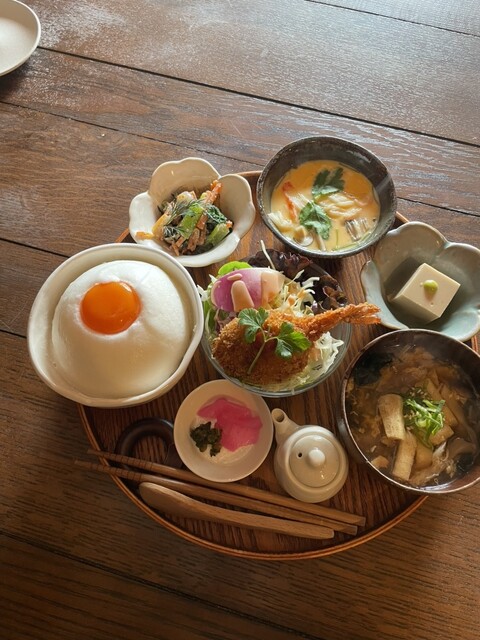 ランチメニューは森のおばんざいセットとたまごかけご飯の2種類があり、今回は森...