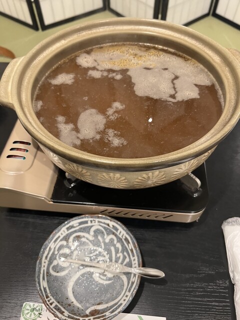 大将にお任せコースをお願いしたら但馬どりのすき焼きでした❗️小鉢のカニも美味しかった。