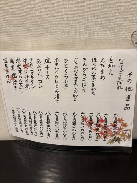 夜料理★単品税込660円夜セット税込2200円より
