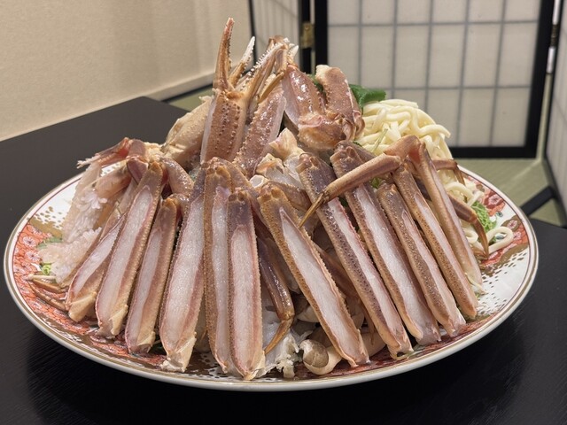 座敷でカニ料理、但馬鶏料理