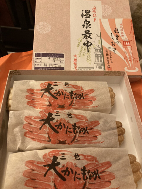 城崎温泉に行く計画を立ててから、お土産は何がいいかとあれこれ調べていて見つけたのが、斎藤製菓堂のかに最中でした。場所は、城崎温泉駅から温泉街に向かう駅前通りを100メートル程のところです。うっかり通り...
