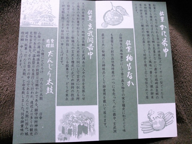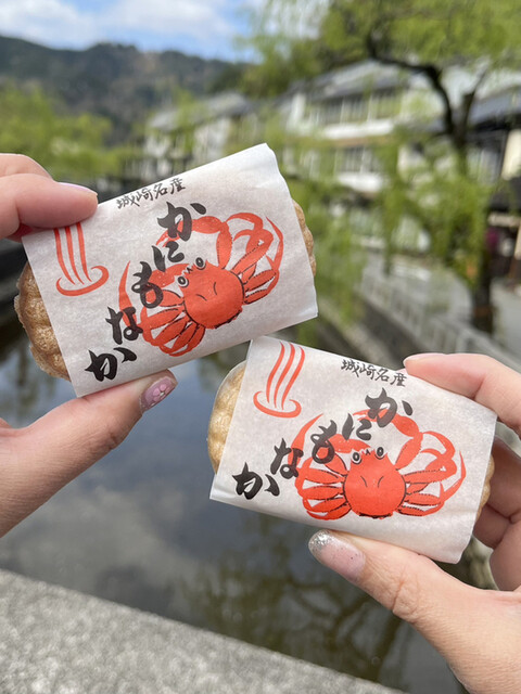 城崎温泉内にある旅館のいくつかでも、お茶受けとしてこの齋藤製菓堂のカニもなか、柚子もなかが提供されてま...