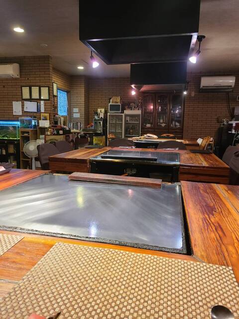 38席 (6人掛け鉄板テーブル5台(※2台は向かい合っており一度に12~14名様まで一緒にお食事できます)8人掛けテーブル1台。) |