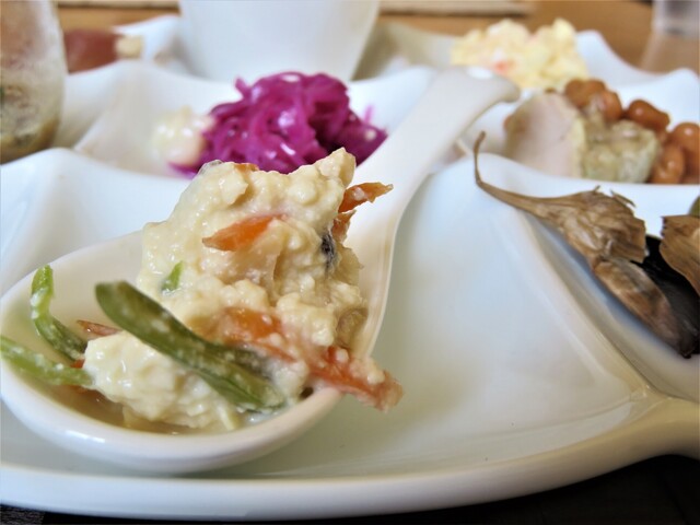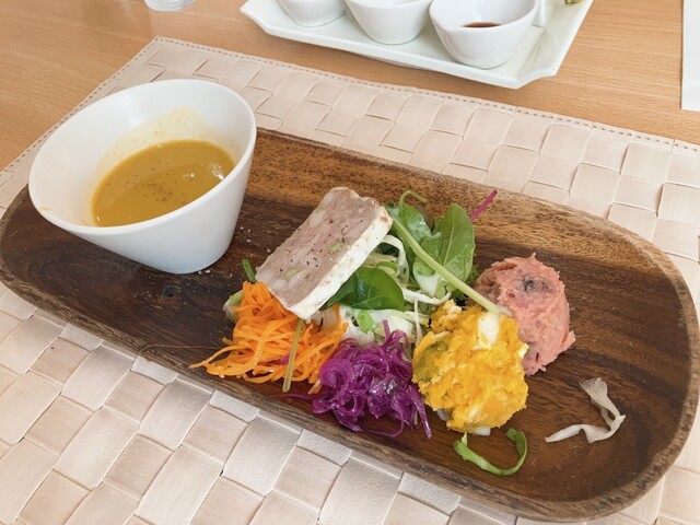 まず最初に、カボチャのスープとパテやサラダの盛り合わせが提...