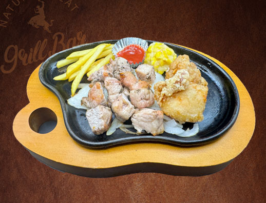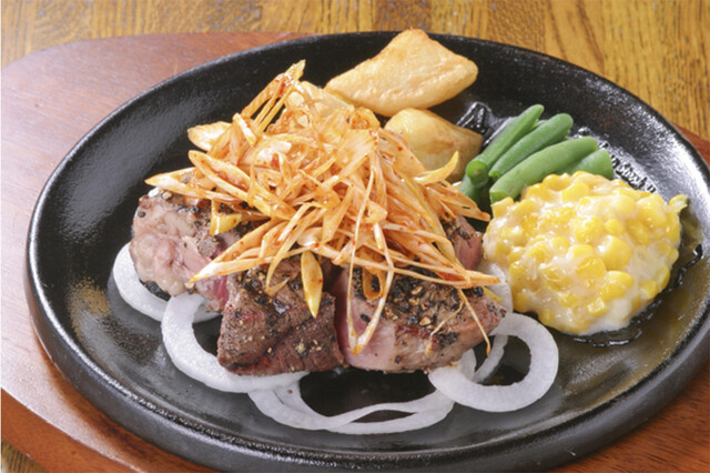 本格炭火焼ステーキとハンバーグ・サラダバーが楽しめます。