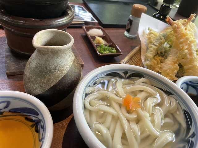 ランチタイムに入店。古民家を改装した店舗は風情があり、庭の木々を眺めながらゆったりとした気持ちで食事が楽しめます。 今回はてんぷらや豆腐、デザートが付く釜揚げうどんのセットと... 詳細を見る
