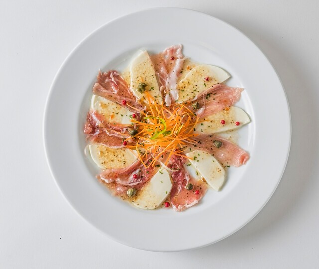生ハムとモッツァレラチーズカルパチョ (by お店)
