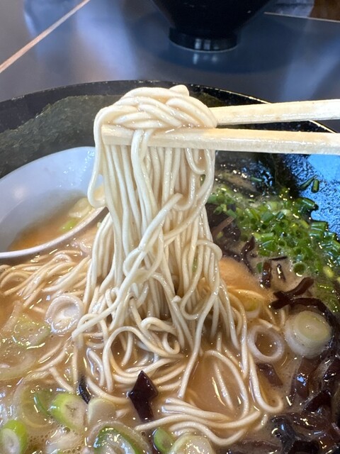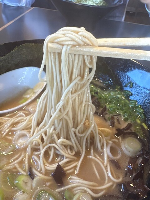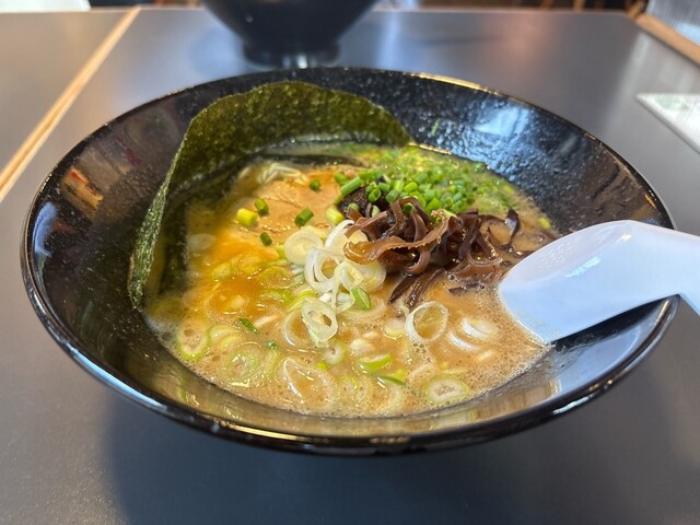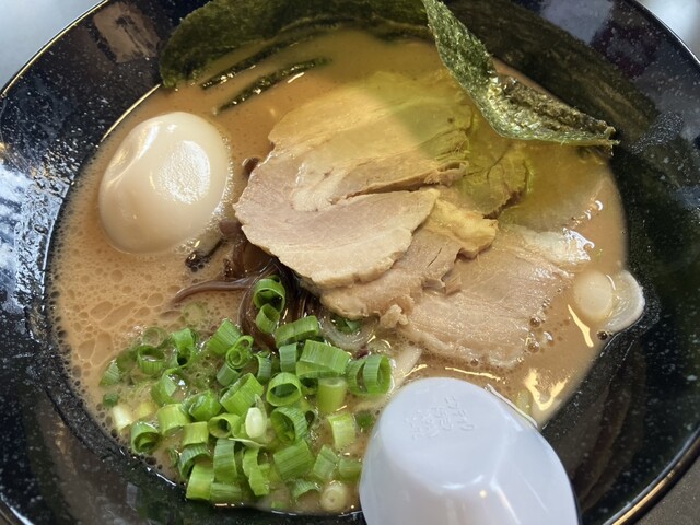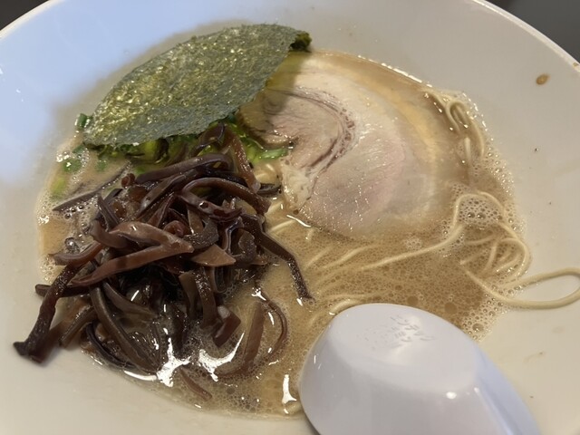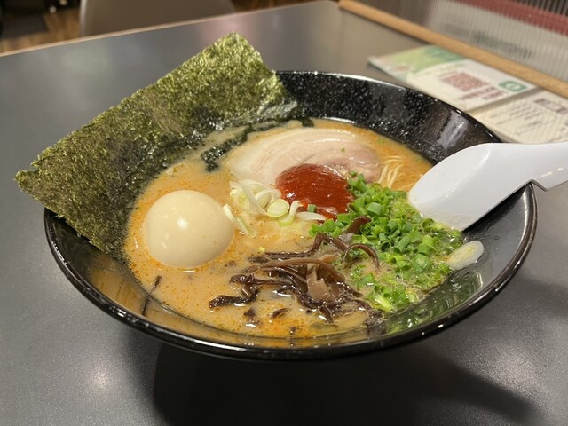 休日19:30ころ訪問。 ※ことぶきさんに振られ、一直さんに振られ、こちらへ。 手前の駐車場ぎり1つ空いてたラッキー。 相変わらずの人気。 梅豚骨(900円) 鬼濃(... 詳細を見る