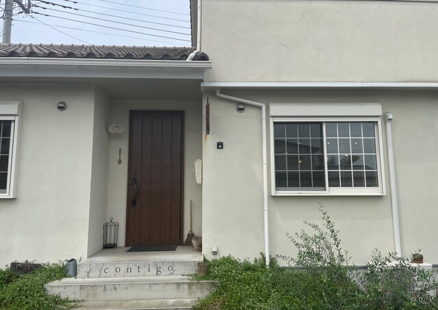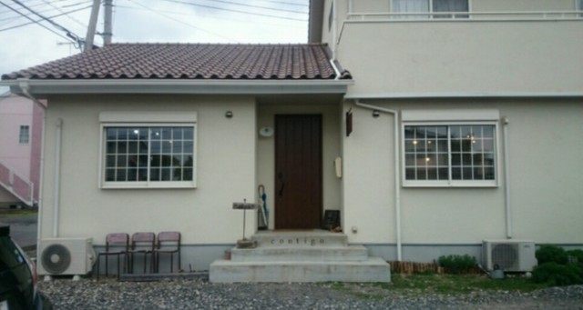 水戸インター近くの住宅街にある一軒家のカフェで入口のドアを入って左側は美容院で右側がカフェです。