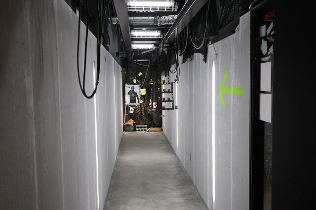 試射室は的を3メートル、6メートル、9メートル、最大の10メートルに移動できるようになってます。