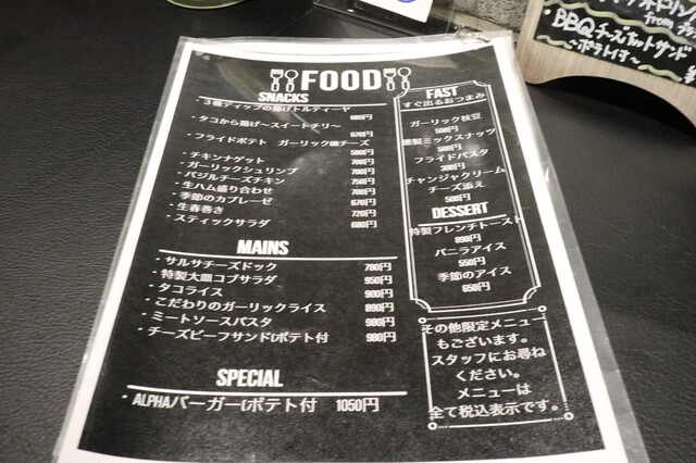 料理やお酒はカジュアルバーの感じで普通ですが、店内雰囲気も良いですし、友達と行ったら盛り上がりそうな空間でした。
