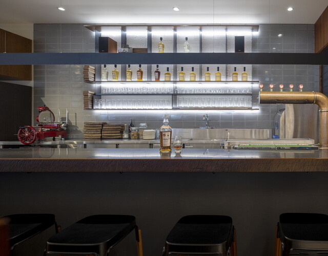 日の丸ウイスキー、日の丸ジン蔵風土、常陸野ネストビール、木内梅酒など、木内酒造の酒蔵や蒸溜所から直送される酒を、カウンターで気軽に一杯からお楽しみいただけます。