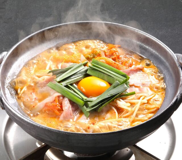もつキムチチゲうどん的なやつ注文しました。