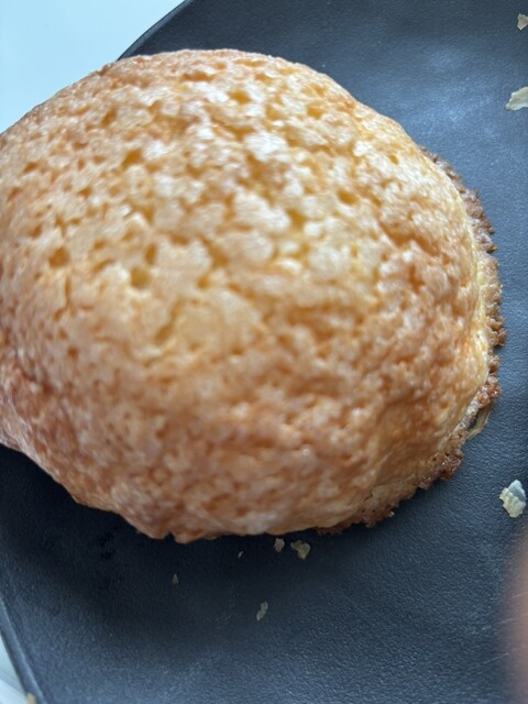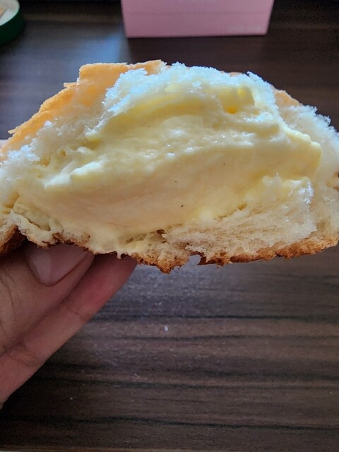 クリームは意外としっかり食感。パン生地はメロンパンにありがちなやや乾いた食感。コーティングからして溢れるメロンの香り。