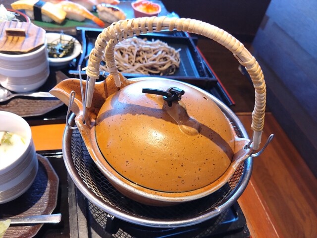 寿司7貫、サラダ、小そば、茶碗蒸しのセット。にぎりは、