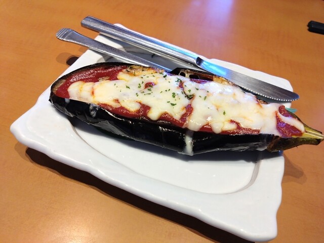 米なすの甘味、トマトソースの酸味、チーズの塩味のバランスが良い。ビールが欲しくなりました。