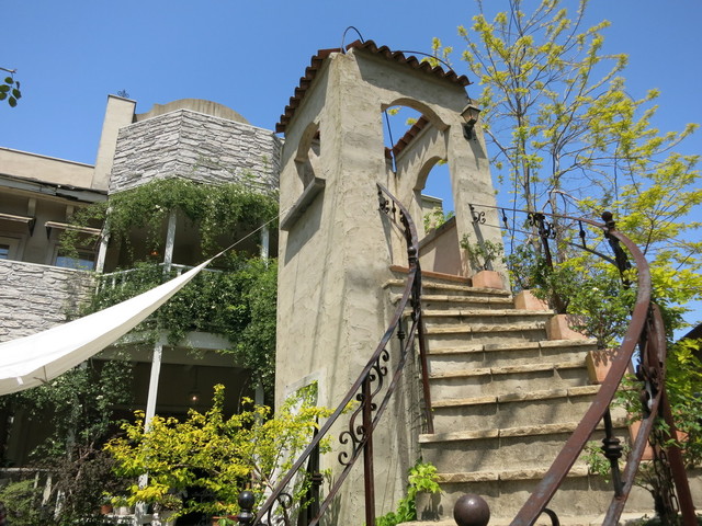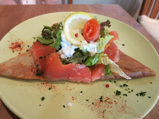 小さなお城のような外観の店内から緑を眺めながら味わう、ガレットの店!