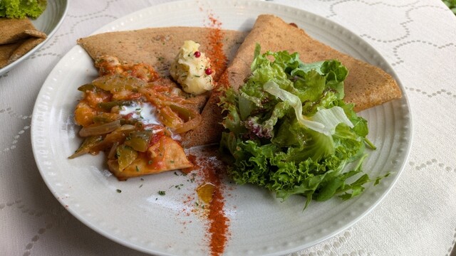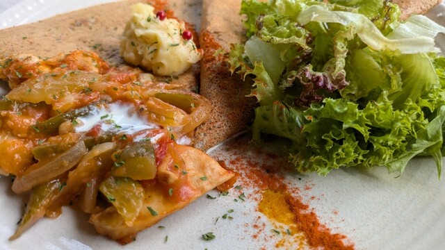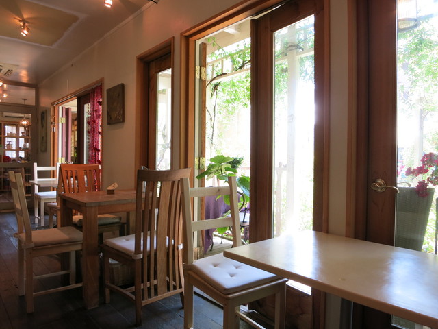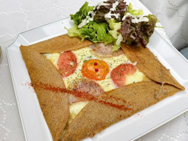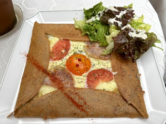 アンティークの家具のしつらいとナチュラルな庭の作り。こだわりの空間は、幅広い年齢層の女性に愛されています。フランス・ブルターニュ地方の家庭料理・ガレットをメインにメニューを展開。食材は地産地消。生地には常陸秋そばのそば粉、奥久慈のたまごを使用。筑波山麓で栽培している農家から仕入れているそば粉のもっちりとした食感をお楽しみ下さい。具には筑波ハム。コーヒーは地元の人気店 旅人のコーヒーといったのものを...。