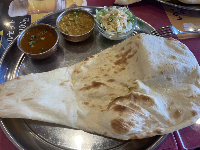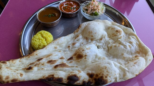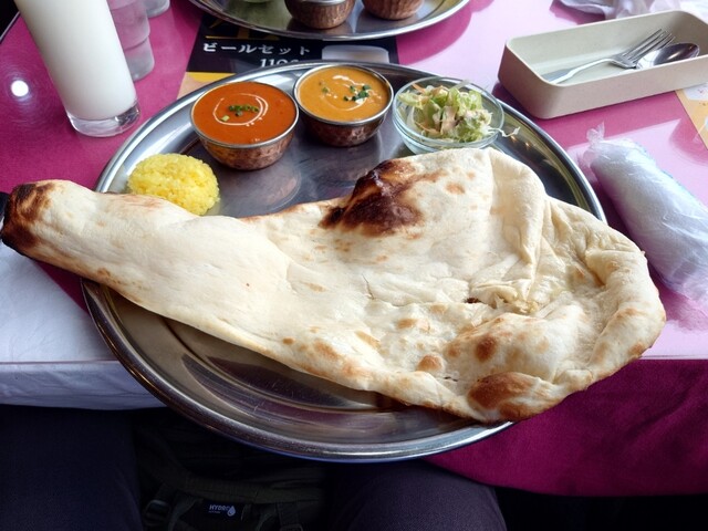 わーお!大きい!思わず声が出てしまうお皿からはみ出しているナンの大きさにびっくり!