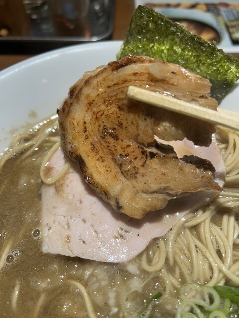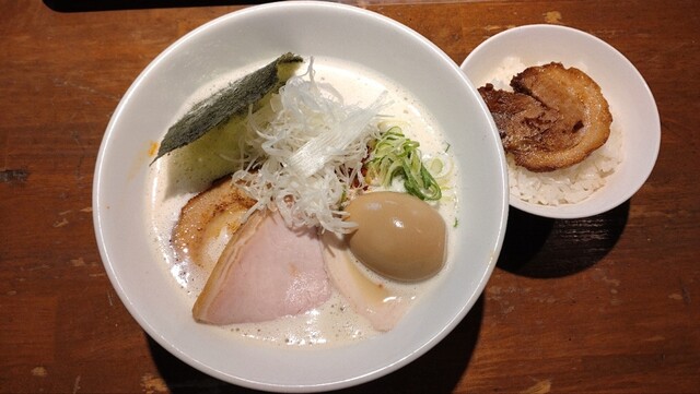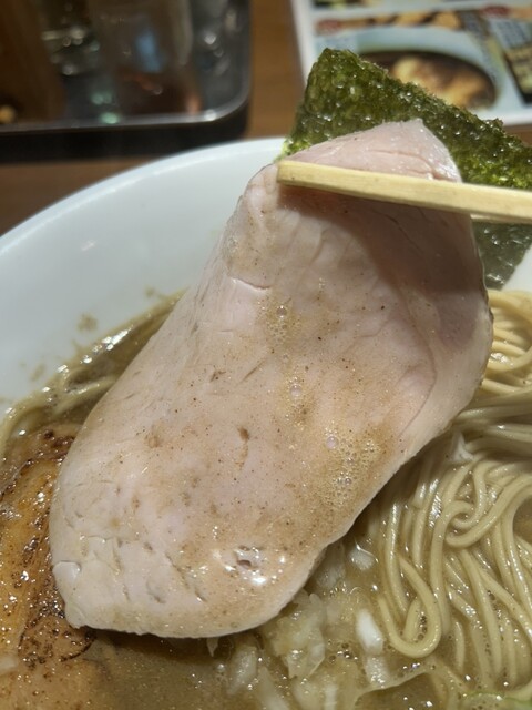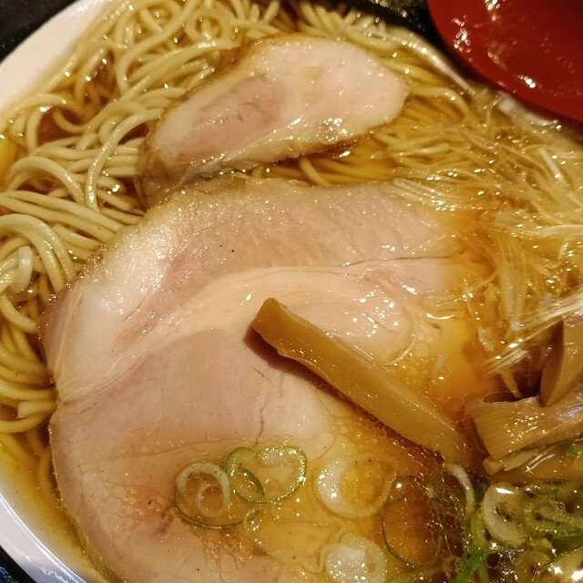 平日の1240ごろに伺いました。丁度満席で5分くらい待って着席できたでしょうか。 前回来店時は煮干をいただいたので、今回は決めていた名古屋コーチンの醤油を、そして券売機の張り紙にに魅了され期間限定のローストポーク丼を注文。 まずラーメンですが、具材が艶やかでオーラを感じます。そしてスープ... 詳細を見る