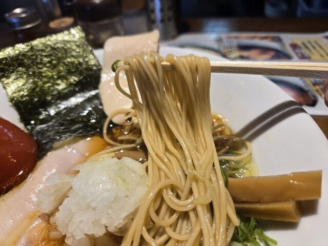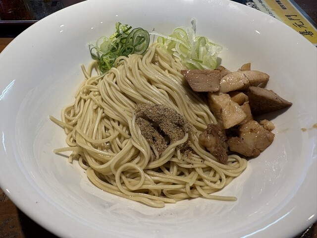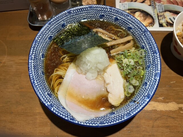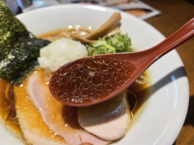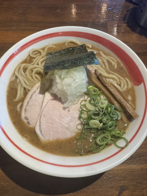 2025年12月のお昼に訪問しました。研究学園駅から徒歩10分ぐらい。11時半開店かと思ったら11時に開店されていて、慌てて入店しました。真空そばは豚骨と煮干しの濃厚スープと太麺で、人気店だけあって満...