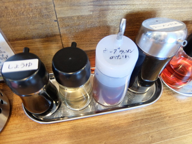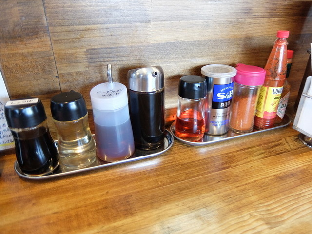 一味、黒コショウ、ラー油、醤油、酢、ラーメンだれ