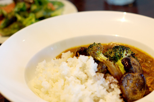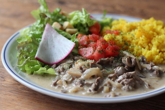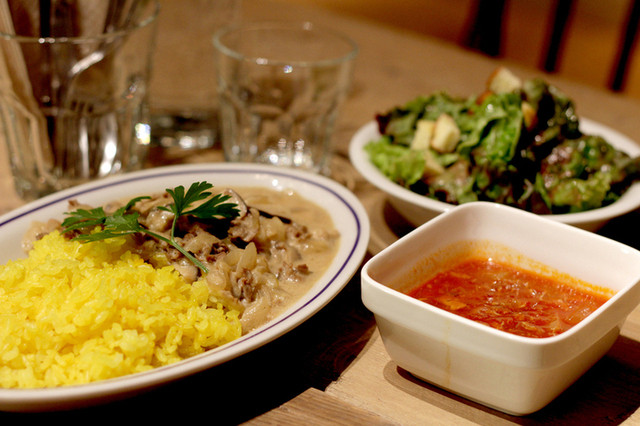 鶏と野菜の自家製カレー。小さなサラダ付き。 (by お店)
