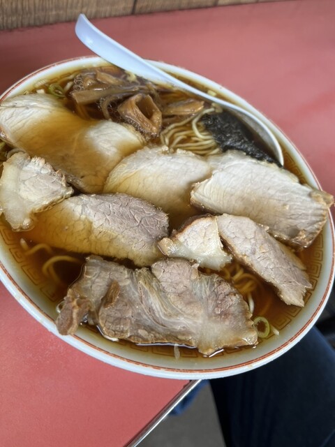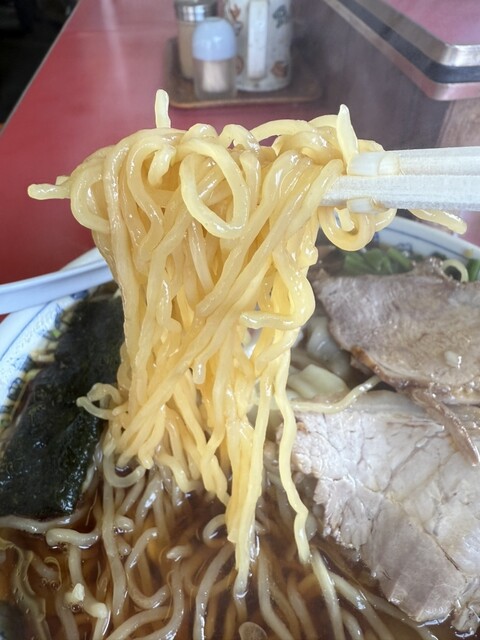 私はラーメンの麺少なめ。...