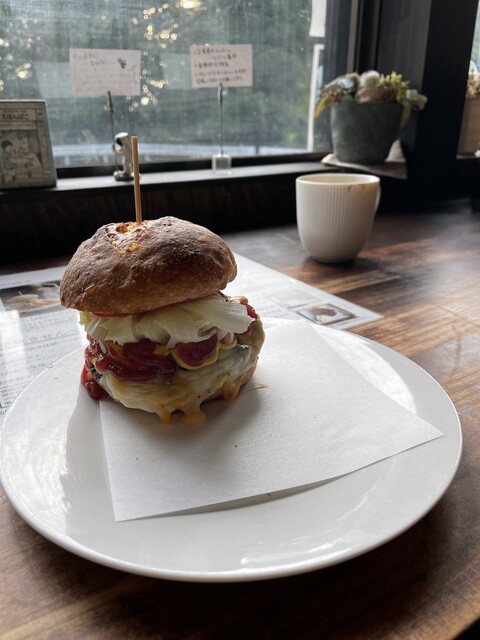 店内は蕎麦屋の雰囲気を残しながらのおしゃれな山小屋にいるような感じ。若い学生アルバイトのお2人が親切に応対してくださりました。1番人気がライ麦バーガーとポテトのセット、 とのことで注...
