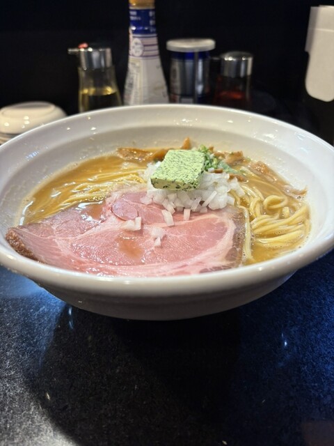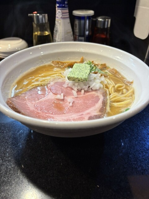『七福軒』Lunch '25/2(Visit) 開店5分前の時間に到着、先客3名待ち、券売機の上段の中央”坦々鶏蕎麦”を選択。店内に入ると愛想のよい店員さんからカウンター席、No1へ案内されました。お冷はセルフサービスとなっております。 ▪️坦々鶏蕎麦 ¥950 トッピングは、刻み葱... 詳細を見る